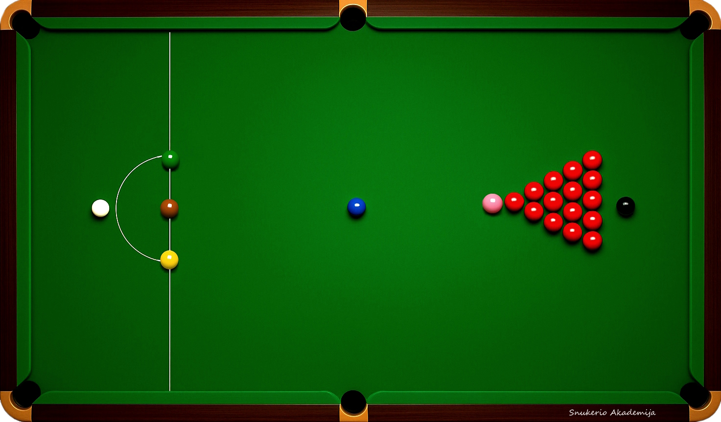 Nelikus raudonų rutuliukų ant stalo, mušami spalvoti rutuliukai pagal didėjančią taškų seką (nuo mažiausiai taškų turinčio geltono iki daugiausiai taškų turinčio juodo).
